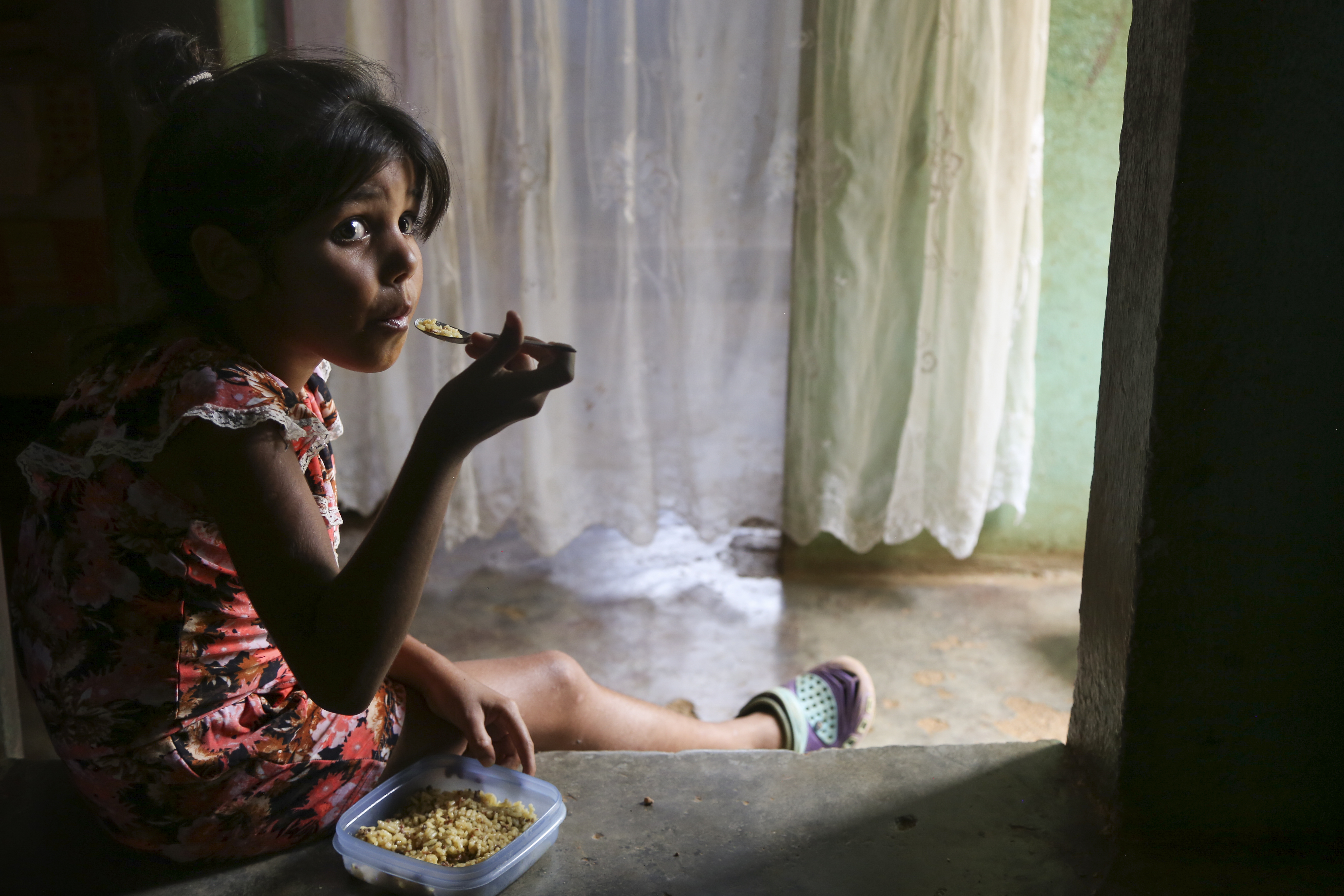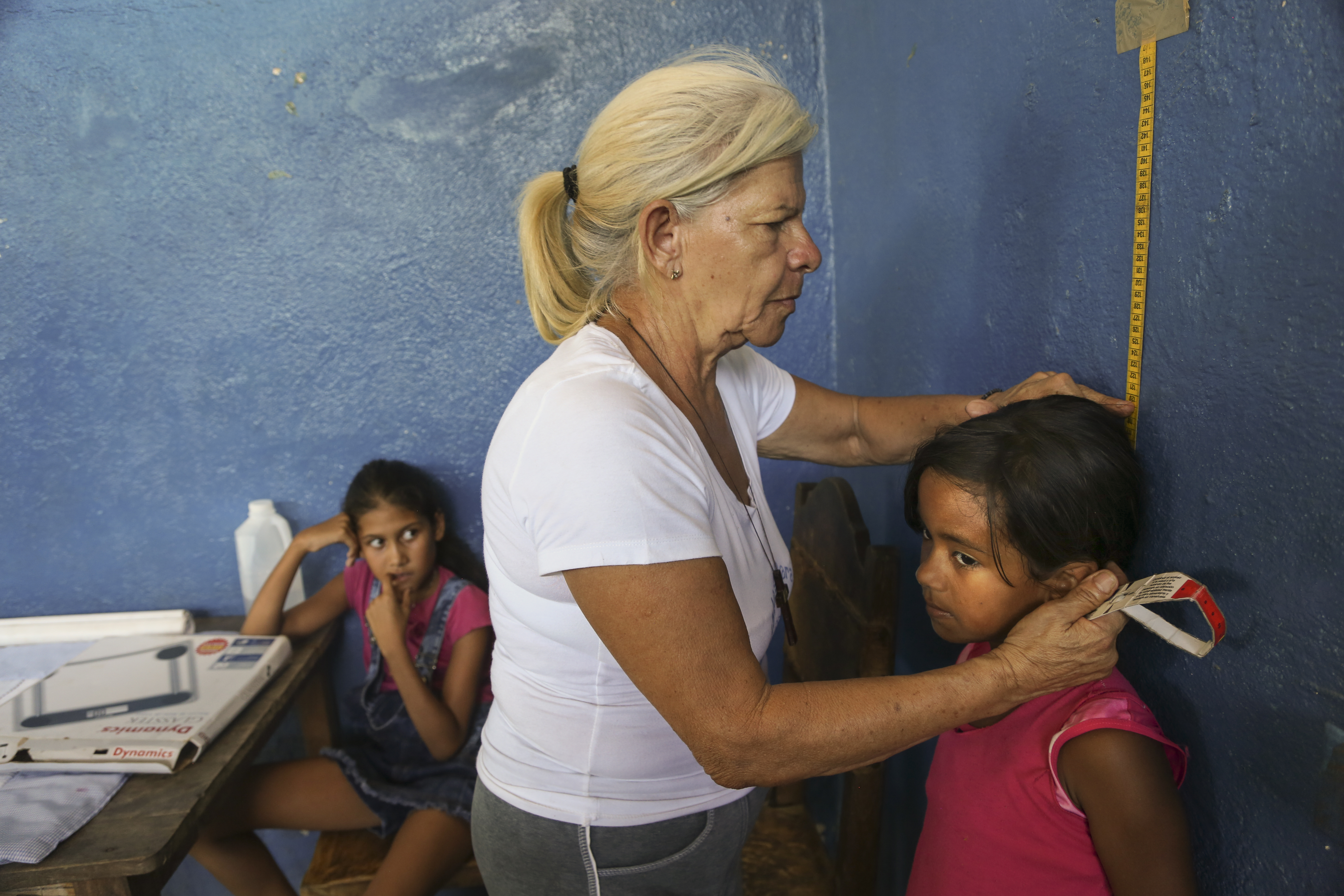A cintura de toda a família encolheu e Yusmarely está preocupada com a saúde dos filhos. Grendimar, com 6 anos, ficou tão magra que chorava e dormia o dia todo. “Ela era tão magra nem se via na cama”, diz Yusmarely. “Quando eu lhe dava banho toda ela era ossos.”